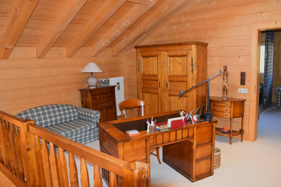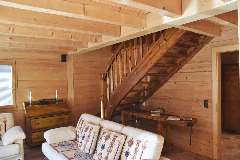 La construction date de 1999 et sa surface habitable est environ d'environ 250 m2. L’intérieur dévoile une décoration splendide dans les tons chauds d’un brun mielleux Le chalet est entièrement équipé de nombreux spots intérieurs et extérieurs qui lui confère une atmosphère unique en soirée.